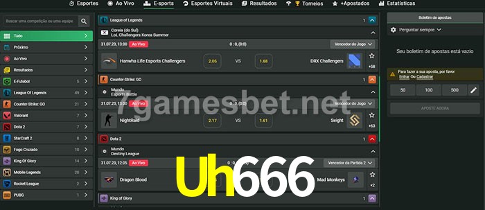 O Uh666 oferece uma grande seleção de opções de apostas em e-sports com probabilidades competitivas